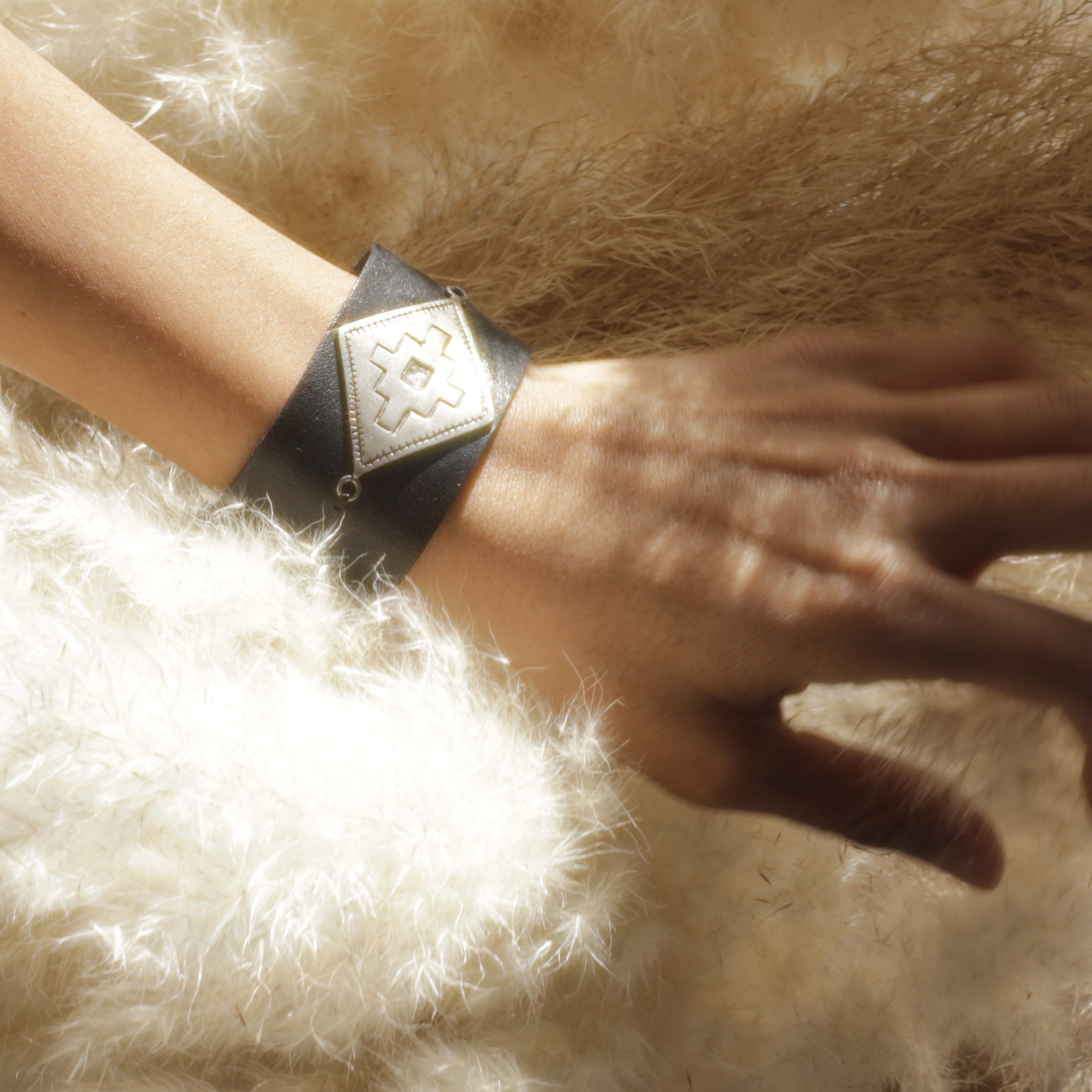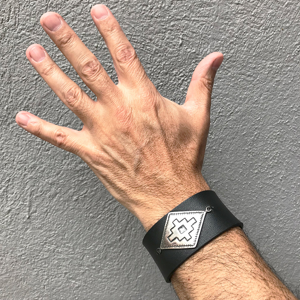 Brazalete Ancho en Piel con Rombo Chenteño  al centro  con dos medidas