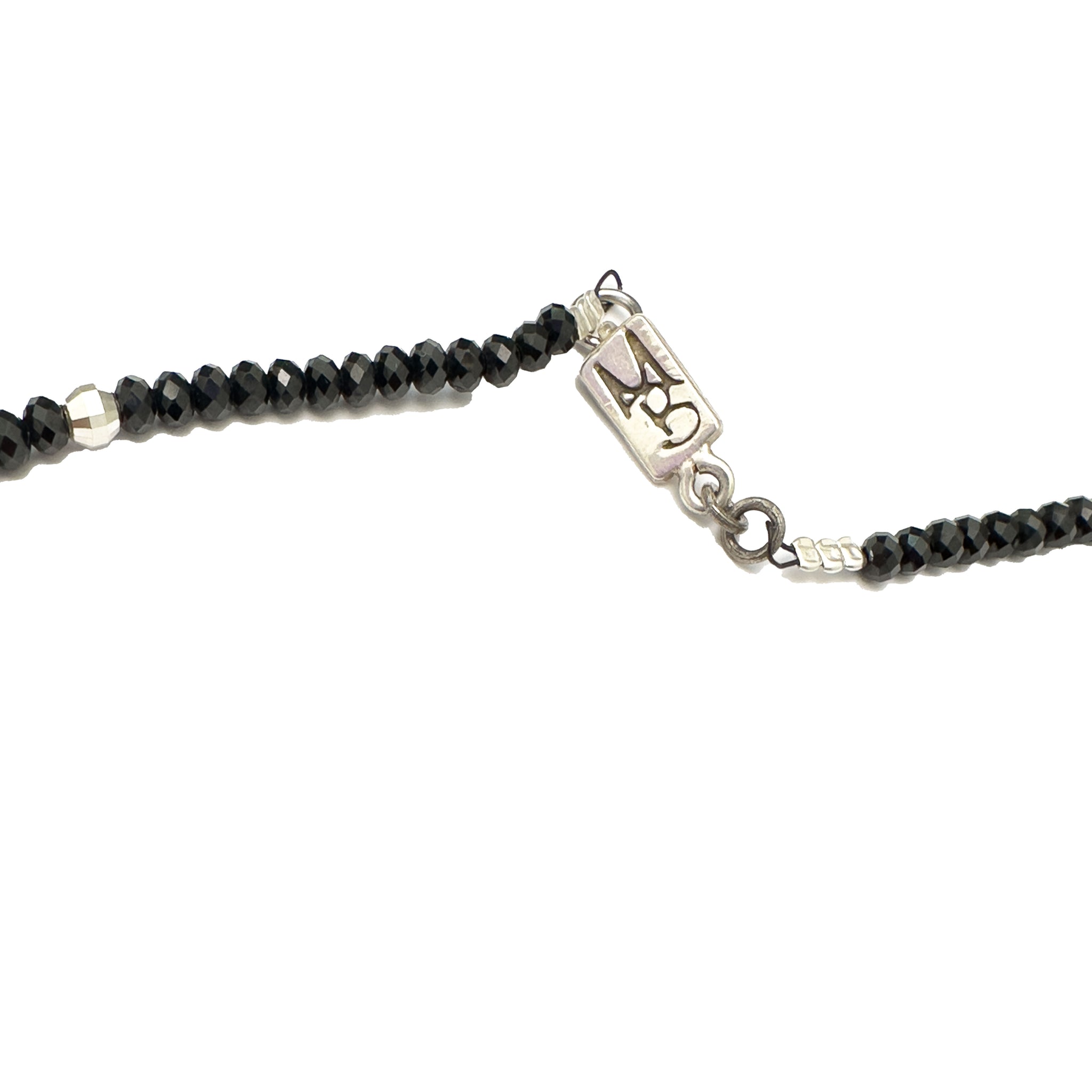 Tamaño 2.5 cm y cadena con piedra espinelas negras de 45 cm .